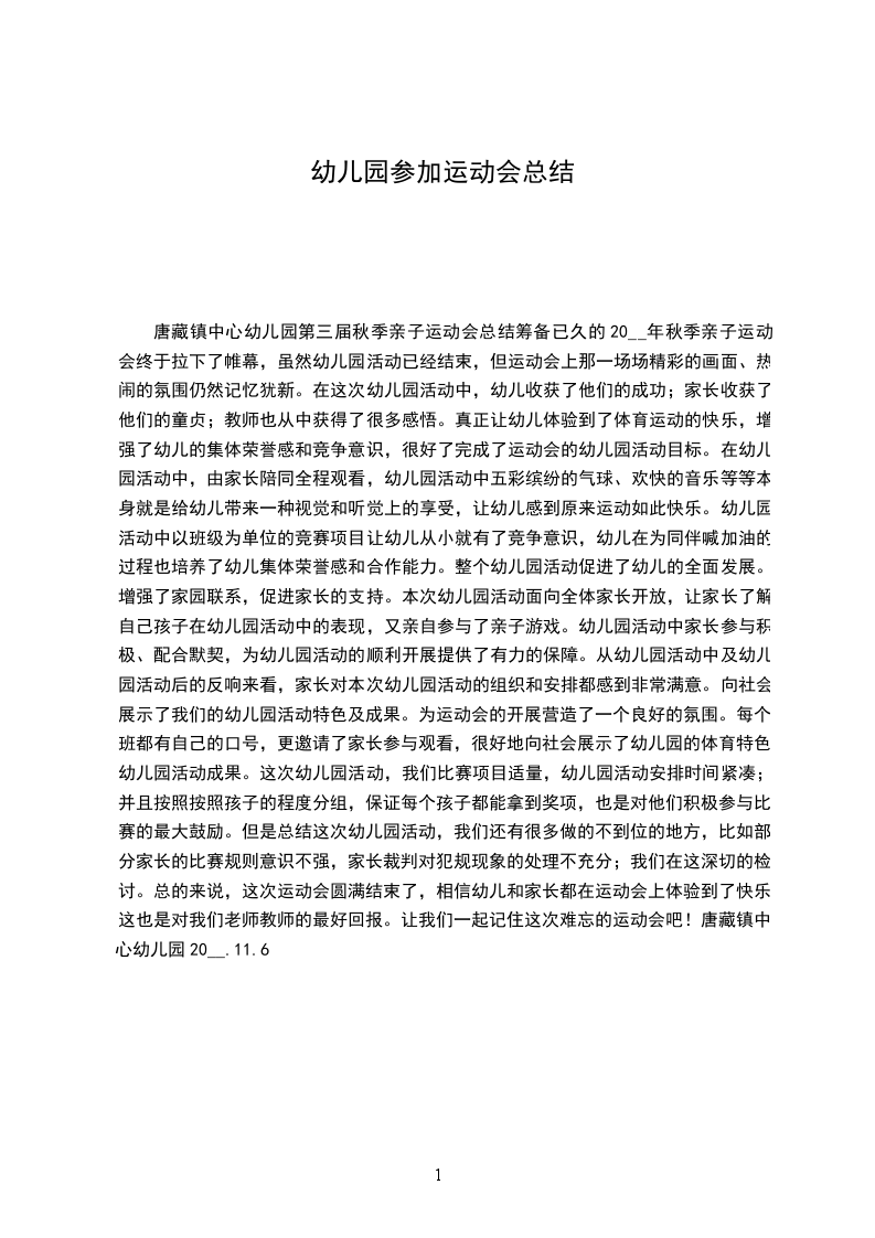 6、各个裁判组成员到位,裁判安排如下:计时:、终点:、发令:、检录检查:,集体项目裁判:、,、,个人项目裁判:,、,公告:、,广播宣传:、奖品:、后勤部:。工作人员教师共__人,幼儿家长共__人。