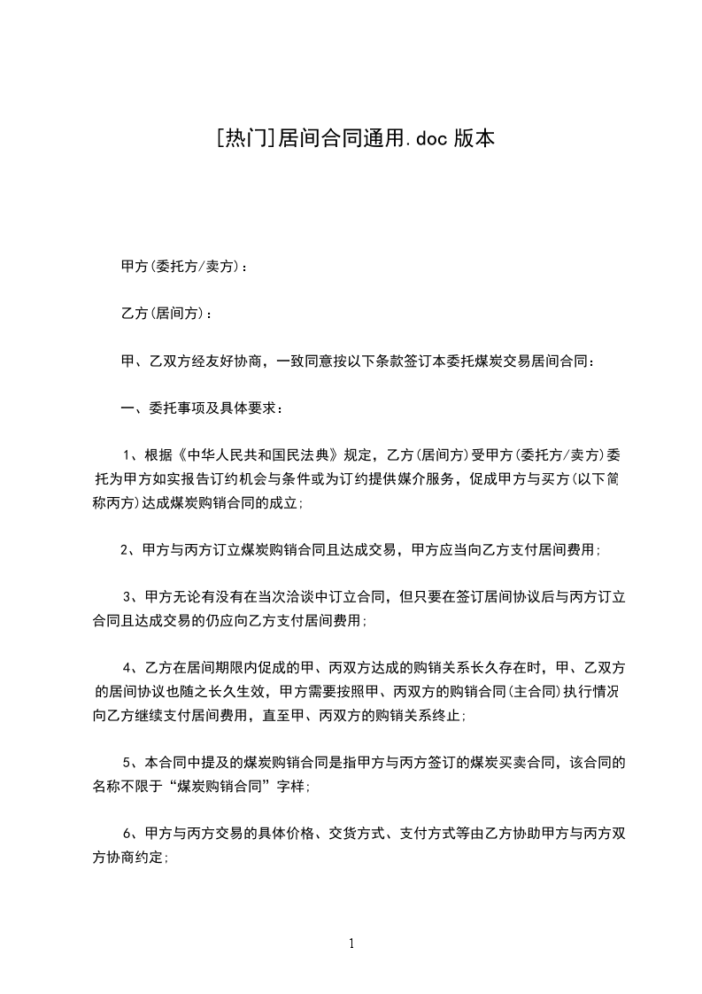 居间人(乙方):