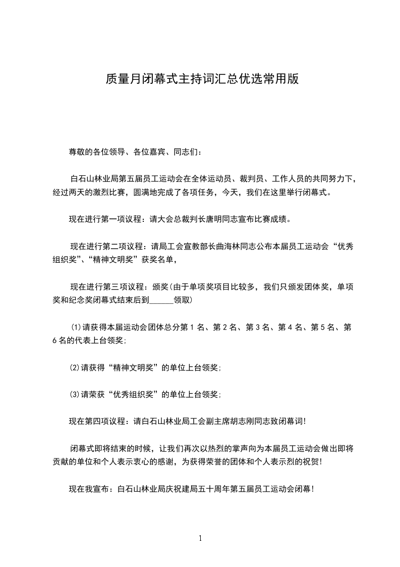 闭幕式即将结束的时候,让我们再次以热烈的掌声向为本届员工运动会做出即将贡献的单位和个人表示衷心的感谢,为获得荣誉的团体和个人表示烈的祝贺!