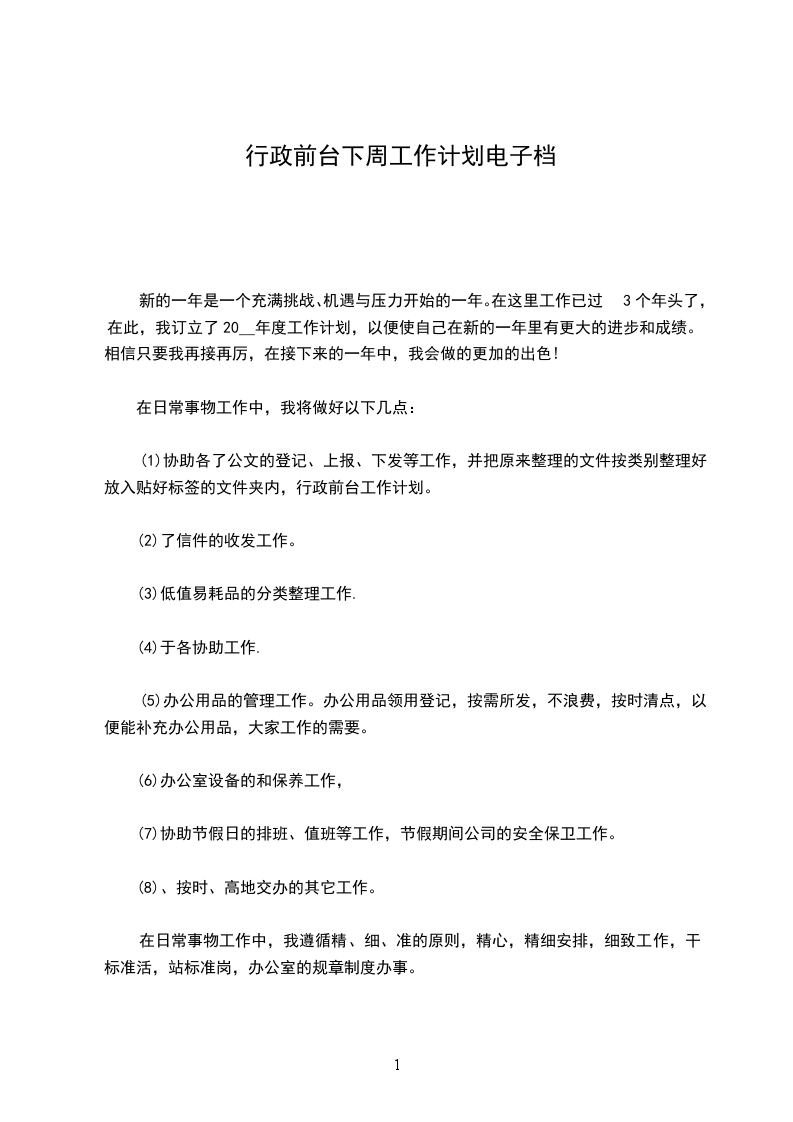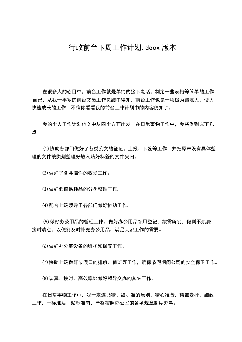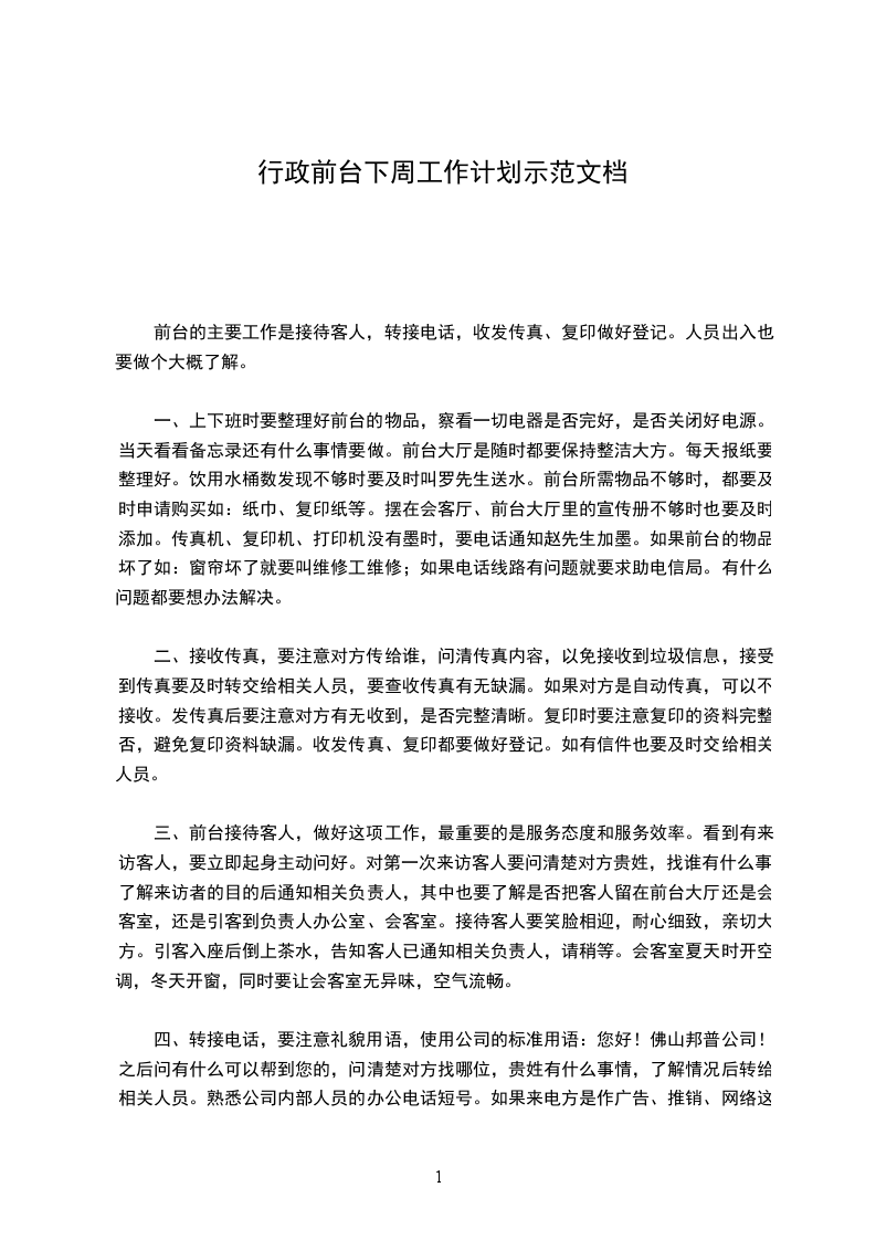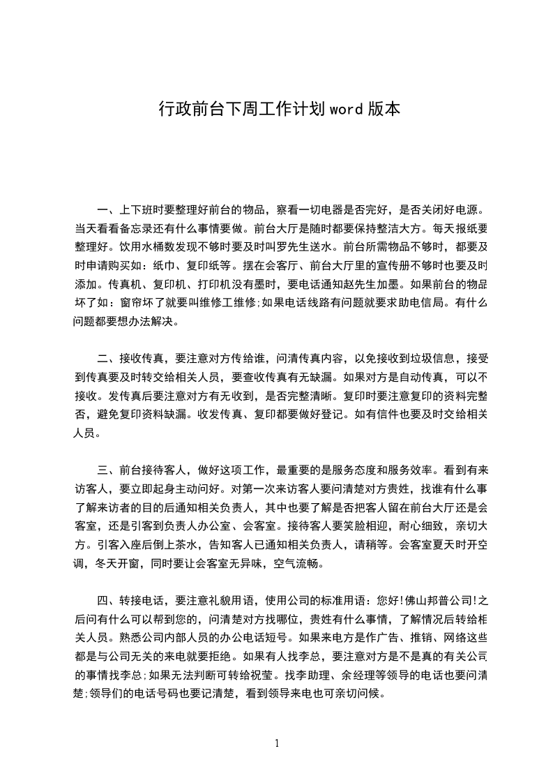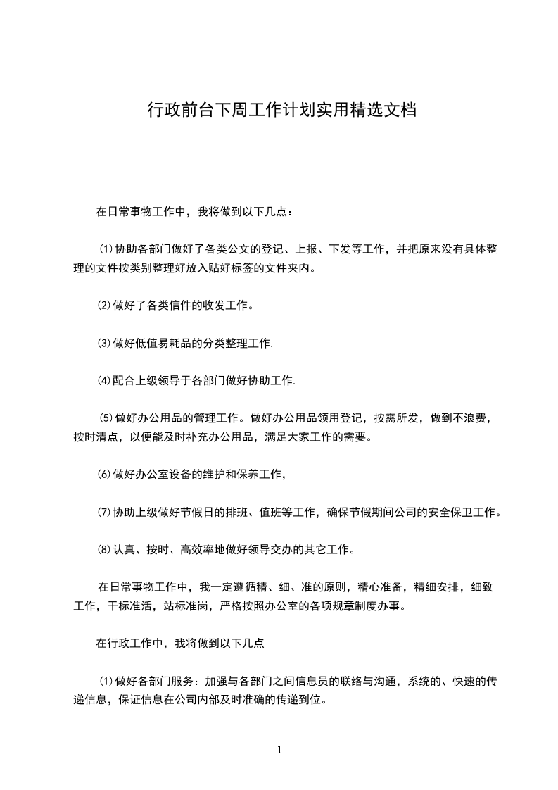 行政前台下周工作计划实用精选文档