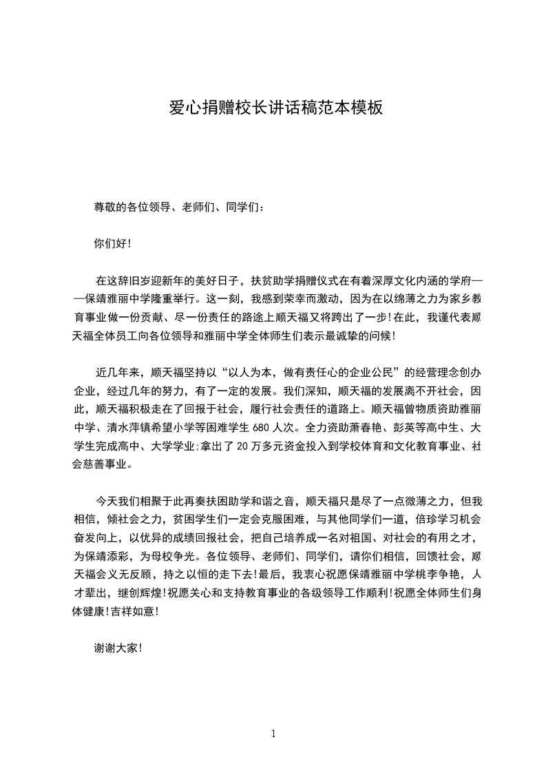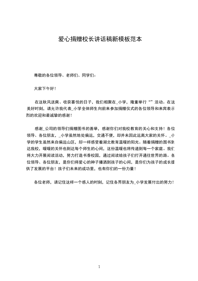 在这秋风送爽、收获喜悦的日子,我们相聚在_小学,隆重举行“”活动。在这美好时刻,请允许我代表_小学全体师生向前来参加捐赠仪式的各位领导和来宾表示烈的欢迎和最诚挚的感谢!