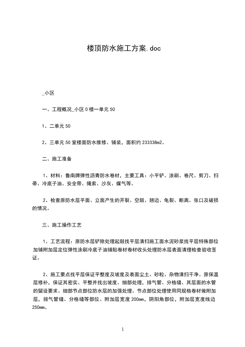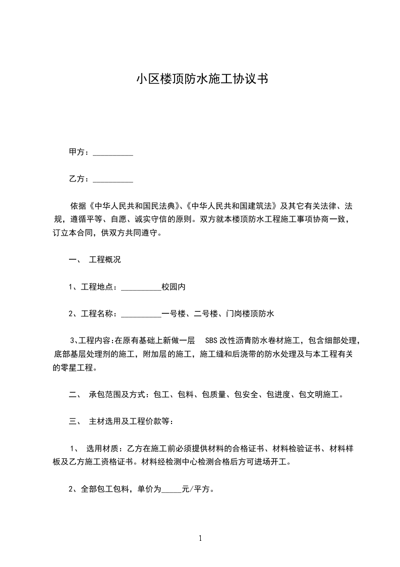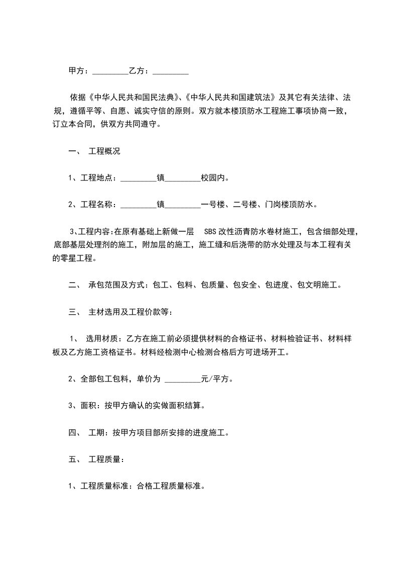 (2)质量要求:乙方按防水规范组织施工,以屋面不渗水为准。