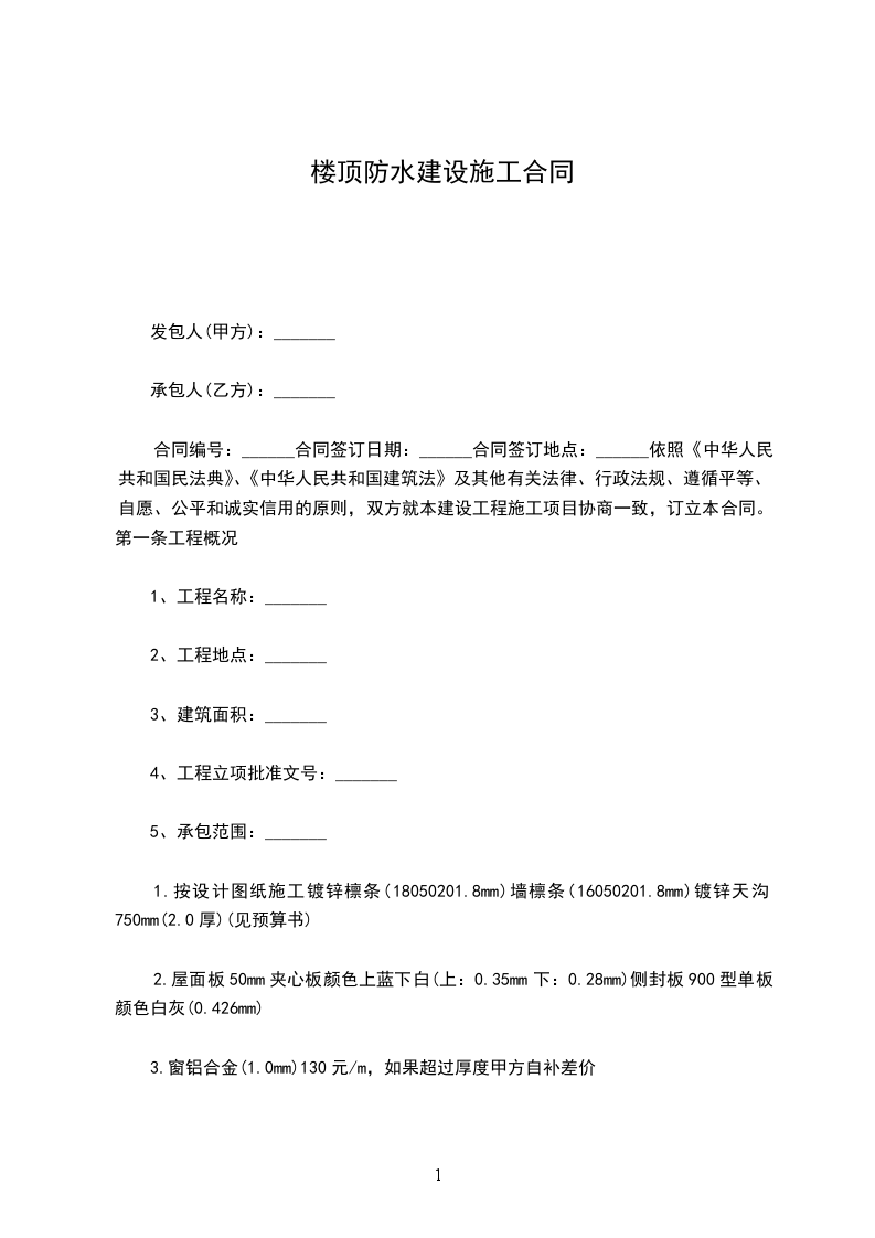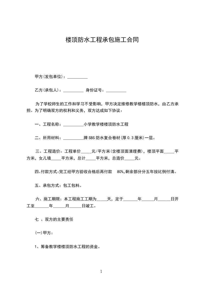 (7)保修办法:免费保修期为 5年,自20xx年12月30日 至20xx年12 月30 日,保修期内若发现屋面渗水,乙方应免费维修,乙方接到保修通知后,三天之内组织人力物力赶赴现场,乙方不得以任何理由推托。