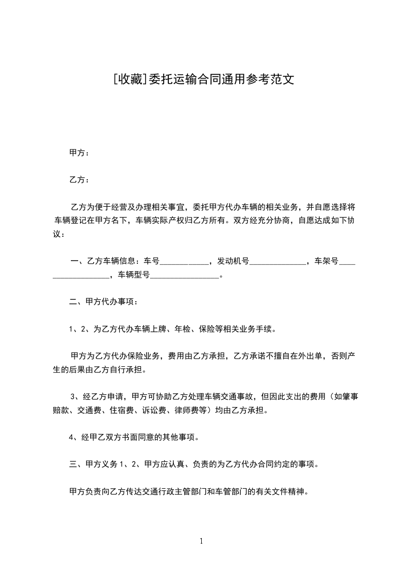 1、乙方自愿遵守甲方所在地交警、运管等行政主管部门和甲方的各项管理制度,每年向甲方交纳代办服务费_________元,甲方则按乙方要求完成代办业务,具体业务流程以实际发生为准。代办服务有效期:_________年____月____日至_________年____月____日止。