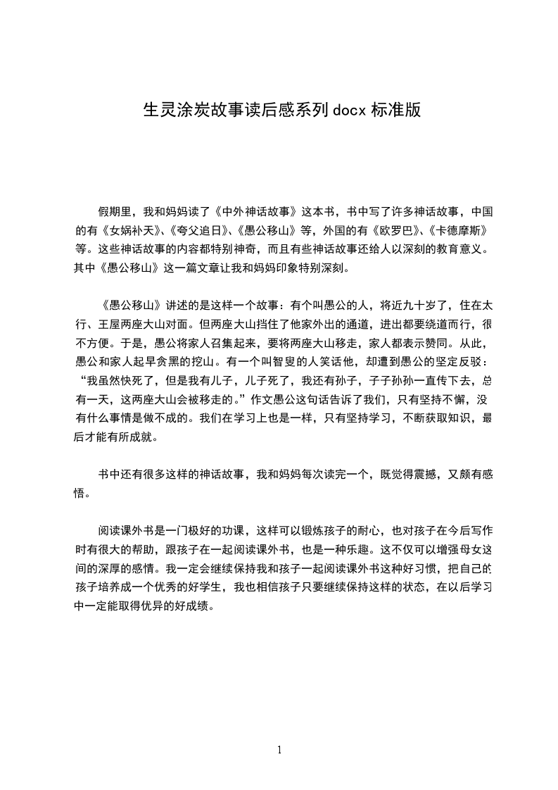 假期里,我和妈妈读了《中外神话故事》这本书,书中写了许多神话故事,中国的有《女娲补天》、《夸父追日》、《愚公移山》等,外国的有《欧罗巴》、《卡德摩斯》等。这些神话故事的内容都特别神奇,而且有些神话故事还给人以深刻的教育意义。其中《愚公移山》这一篇文章让我和妈妈印象特别深刻。