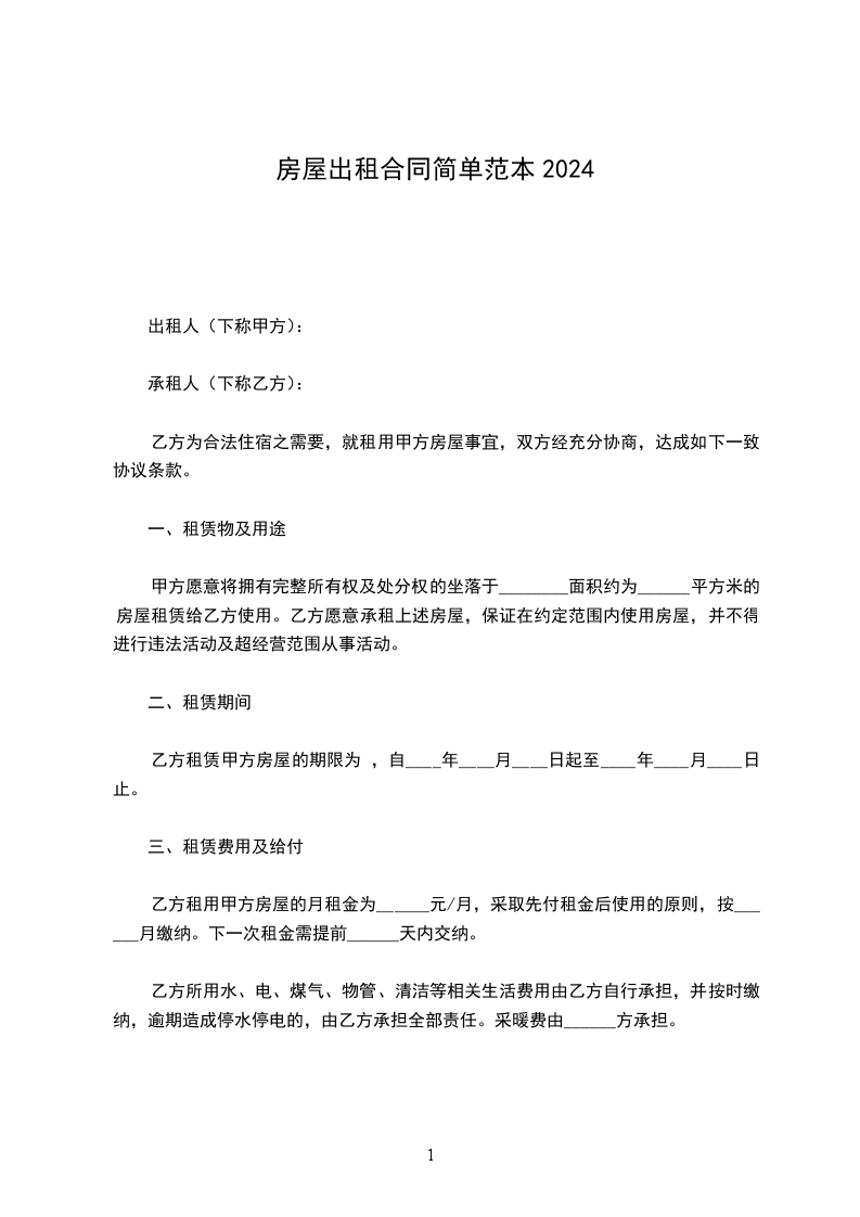 乙方为合法住宿之需要,就租用甲方房屋事宜,双方经充分协商,达成如下一致协议条款。