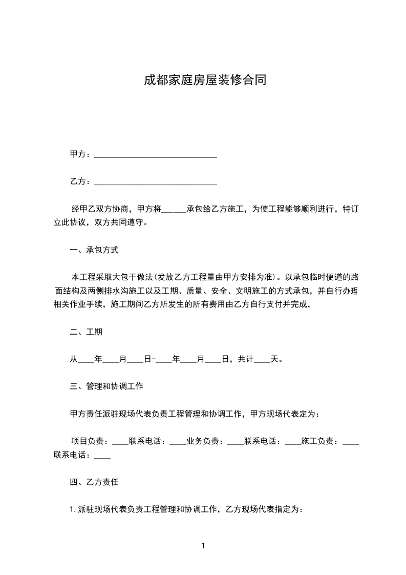 1.派驻现场代表负责工程管理和协调工作,乙方现场代表指定为: