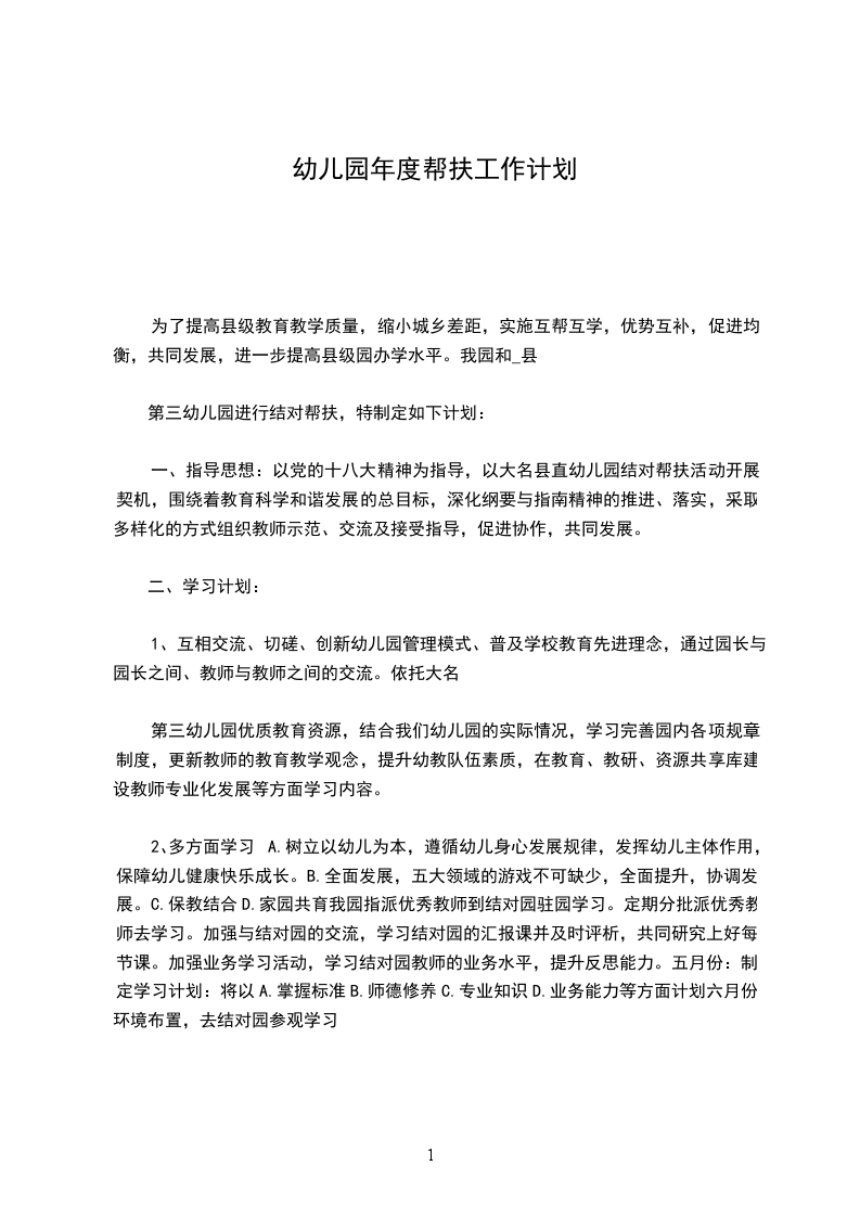 乐安实验学校幼儿园是一所集市级十佳幼儿园和省级示范幼儿园为一体的阳光型园所,按照时代的要求,开放地吸收和接纳各种信息资源,兼容并蓄,为我所用,从而实现优化整合。另一方面,为进一步发挥我园省级示范幼儿园、“十佳”幼儿园辐射作用,以开放的姿态面向乡镇,真正走进和融入乡镇,为幼儿园创造更广阔的发展空间。加强城乡学前教育的交流,促进城乡学前教育的均衡发展,我园与锦秋、博昌两个办事处结为城乡帮扶拉手园,我们力求把学前教育的新理念带到乡村幼儿园,促进乡村幼儿园新课程改革的研究和深化。并依托农村资源作为城区幼儿园的活动基地,使幼儿了解乡村幼儿的学习和生活环境,使城乡幼儿在互助友爱、交流合作过程中身心和谐发展。在县教育、教研相关部门的领导下,务求“手拉手”活动取得实效,由此特制定本年度(20__、3---20__、12)“手拉手”助教促学计划。
