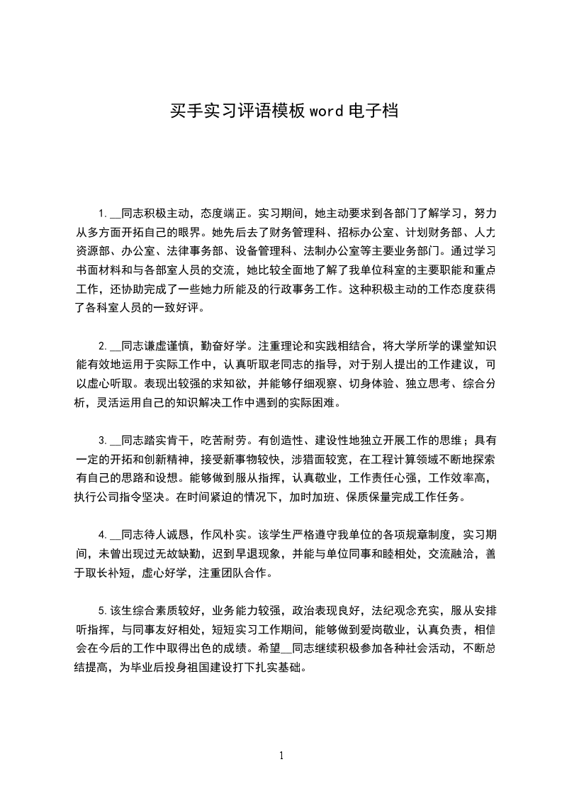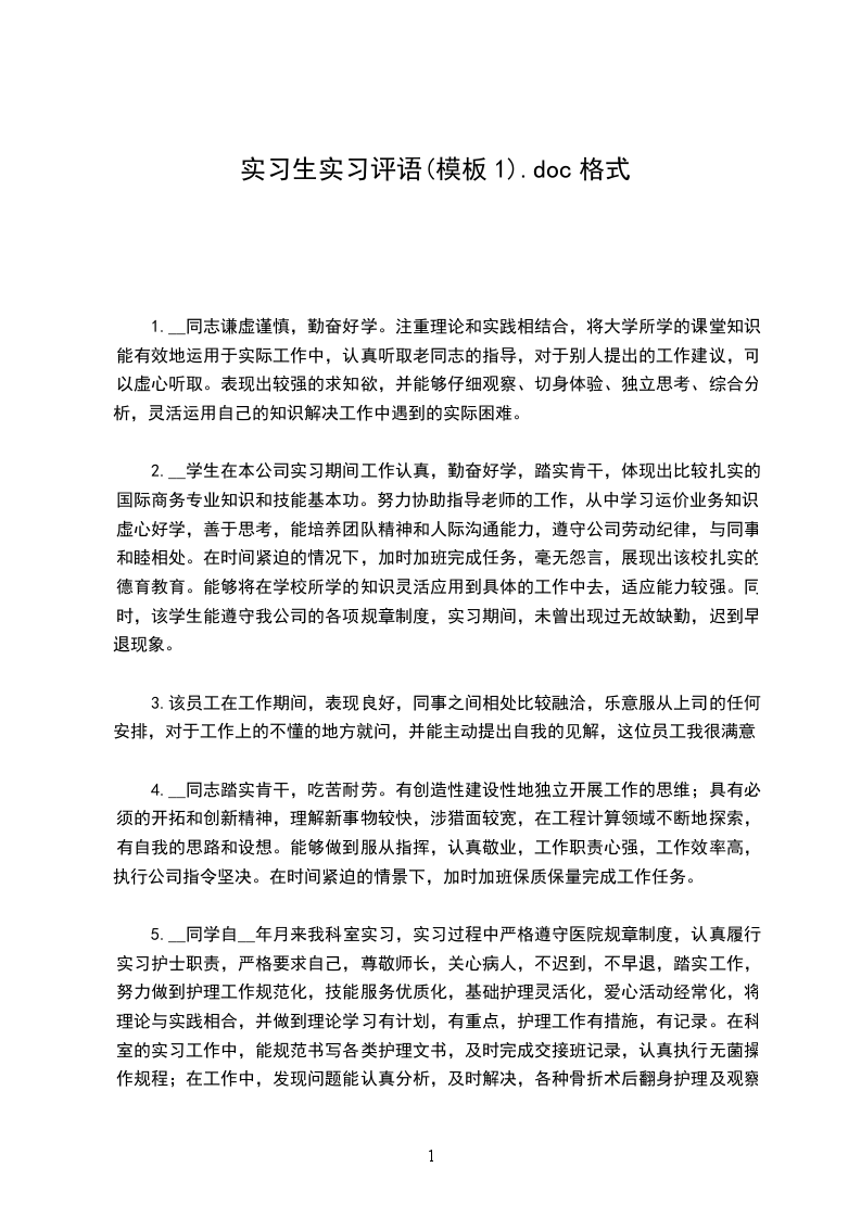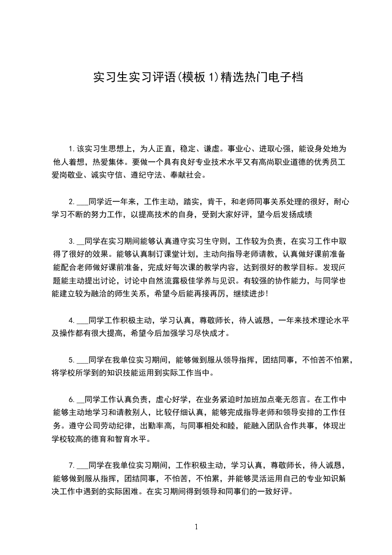 1.该生在我公司实习期间表示优秀,严格遵守公司各项规章制度,对待工作认真负责,与同事相处融洽,为人谦逊、踏实、勤恳、能吃苦,受到我公司领导及同事的一致好评!