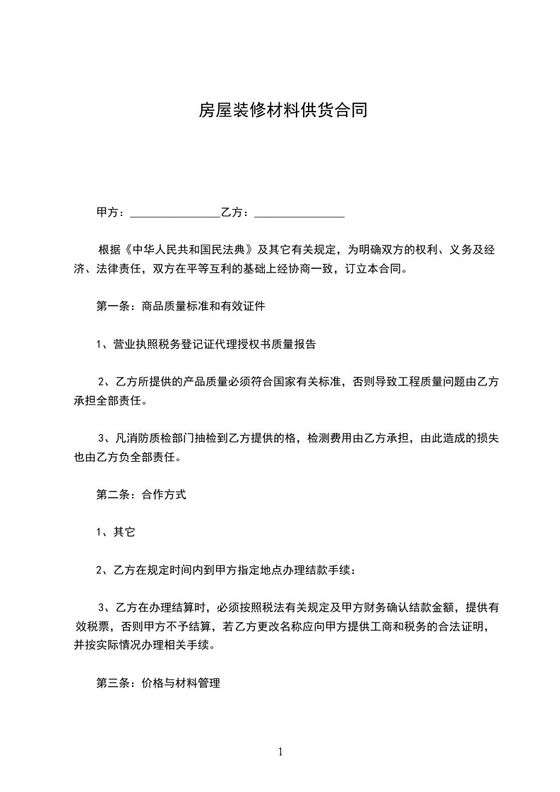 3、乙方在向甲方提供材料时,必须均为优等品。首先要提供样品。样品要符合甲方所需材料质量要求,不得以次充好,若发现质量问题甲方将从材料总金额中扣除50%作为惩罚。