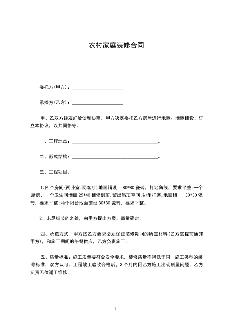 五、质量标准:施工质量要符合安全要求,装修质量不得低于同一施工类型的装修标准,双方认可。工程竣工验收合格后,3个月内因乙方施工出现质量问题,乙方负责无偿返工维修。