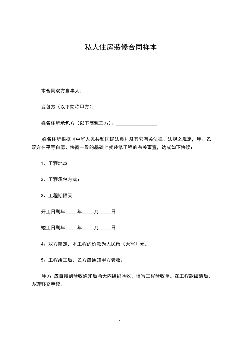 六、工程造价:材料由甲方提供,甲方支付乙方装修人工费_________元人民币。