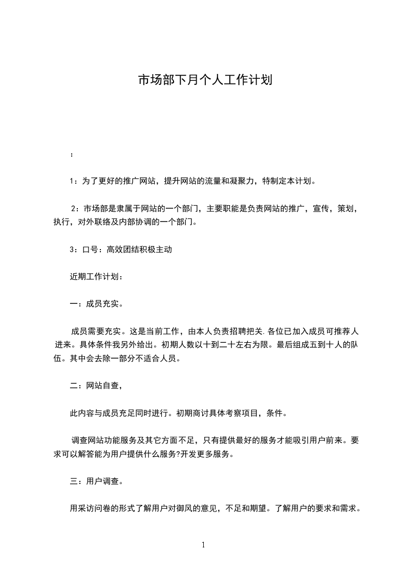 1:为了更好的推广网站,提升网站的流量和凝聚力,特制定本计划。