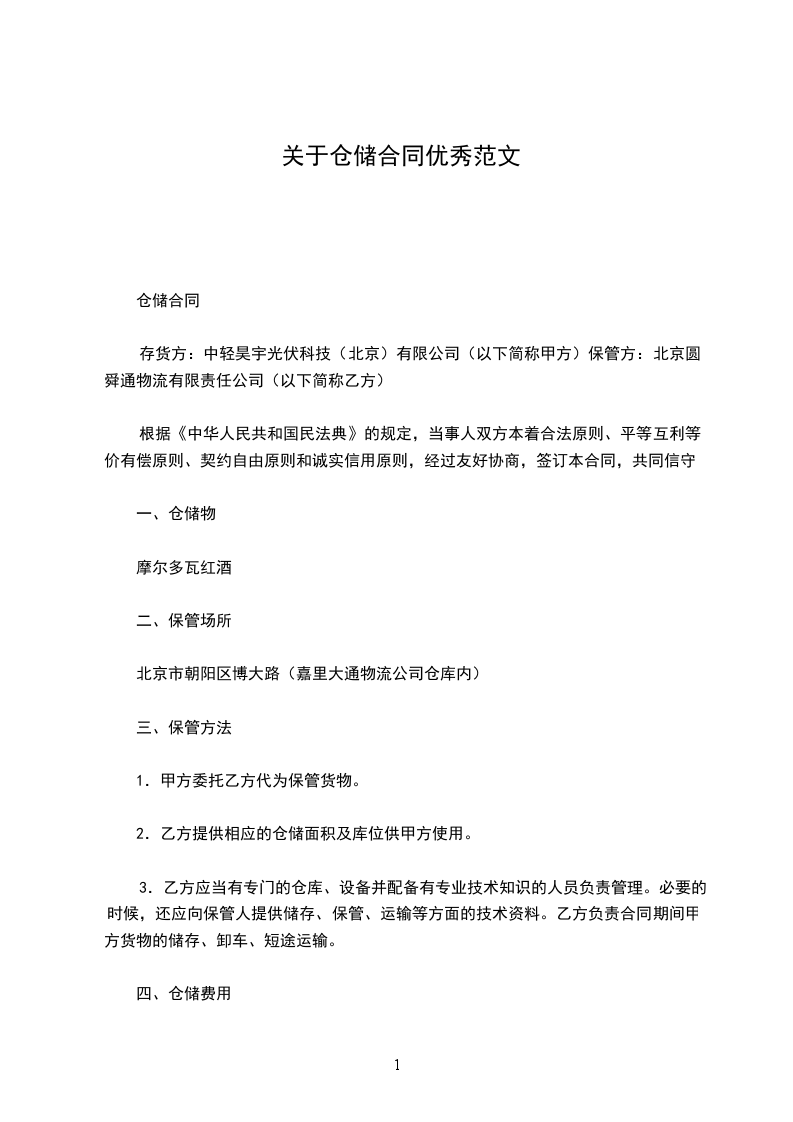 二、本仓储用地年租金为__元/年。租金于每年初按年以现金支付。