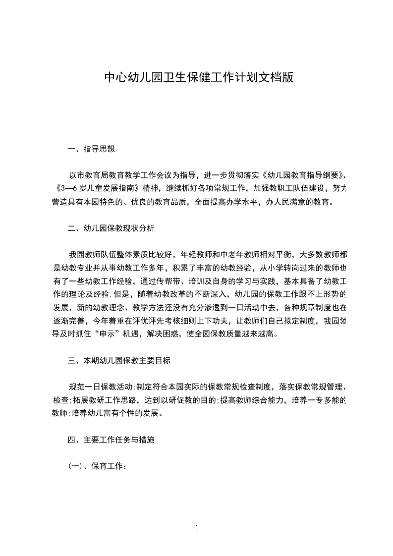 要遵循保教结合的原则。全面规范保教工作,让幼儿有健康的体魄。大力提高保教质量,使我园卫生保健工作再上新的台阶。