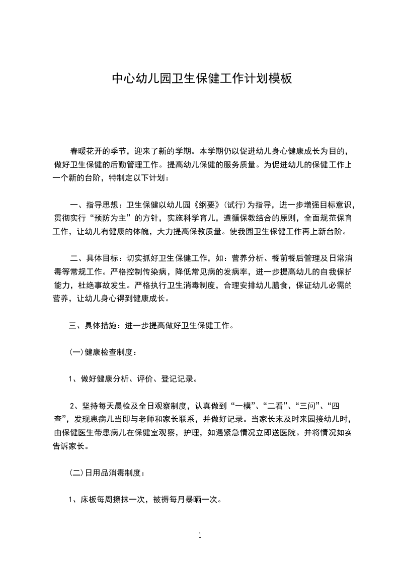 制定好本学期我园卫生保健、保育员工作等有关计划。