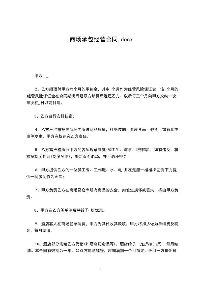 7、做好市场的整体广告宣传,并保证全年广告宣传费用不低于市场全年租金总额的______%。