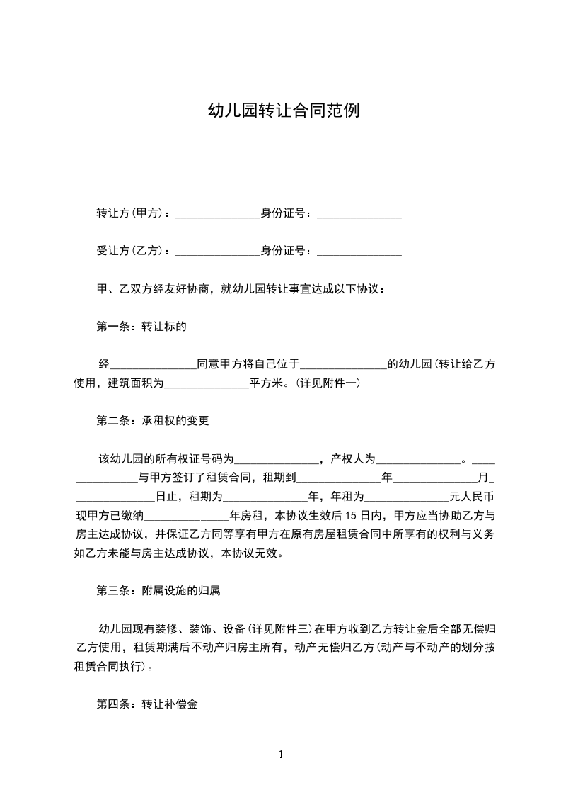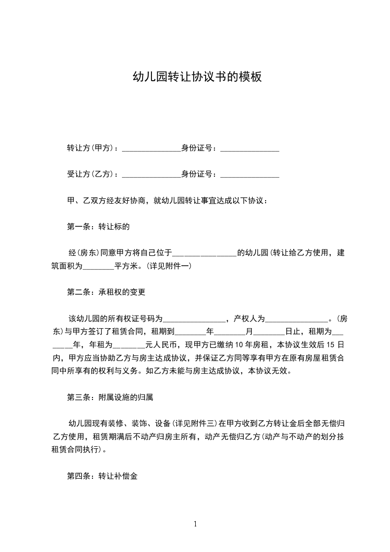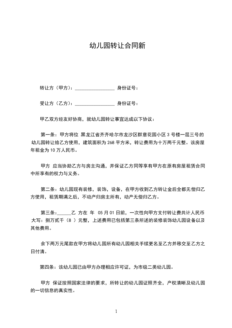 甲乙双方经友好协商,就幼儿园转让事宜达成以下协议: