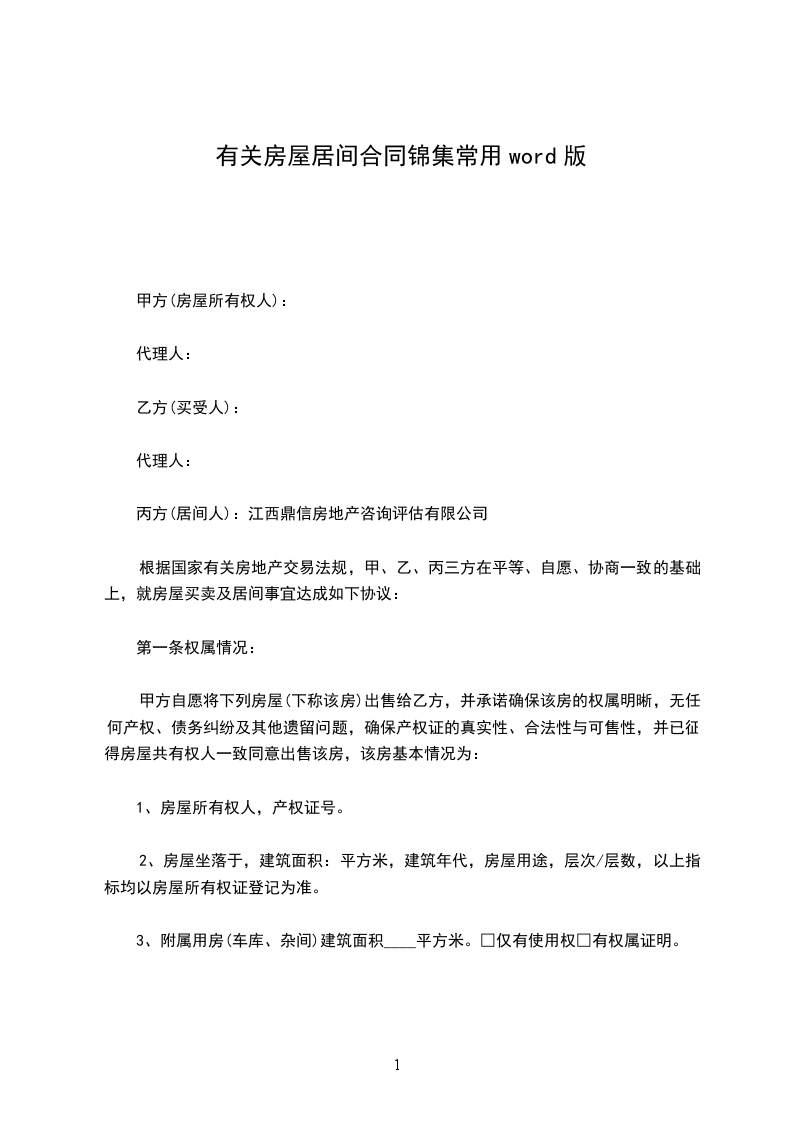 房屋居间合同出卖人(甲方):___市___镇_________村委会