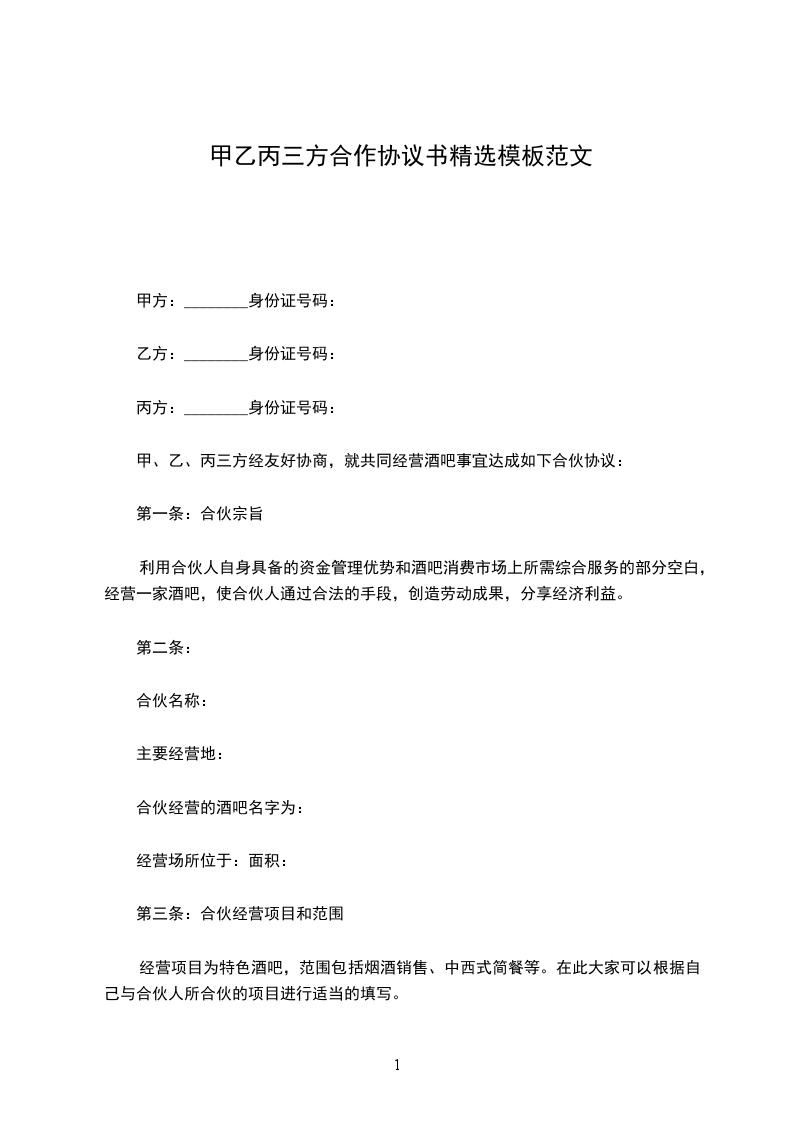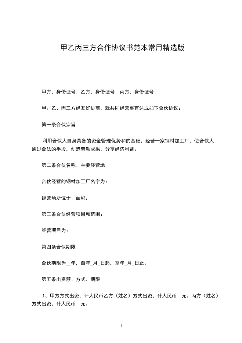 甲、乙、丙三方经友好协商,就共同经营事宜达成如下合伙协议: