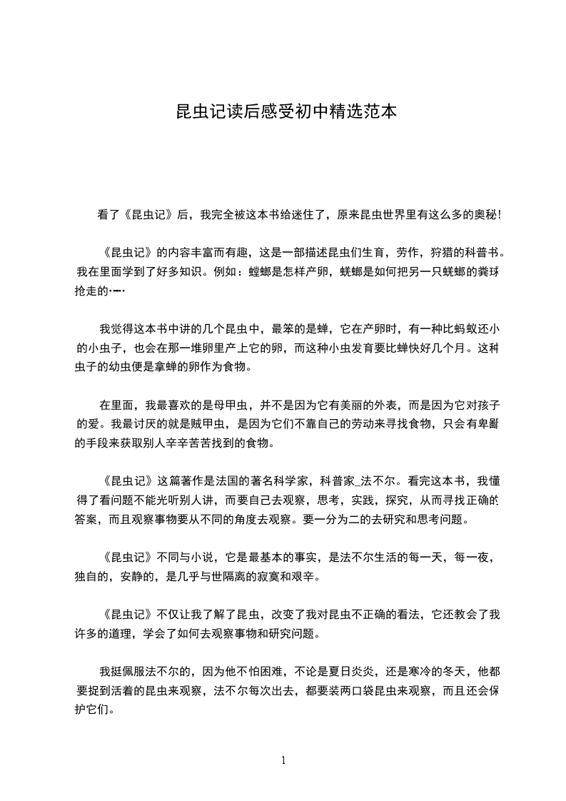 [昆虫记读后感400字初中水平]