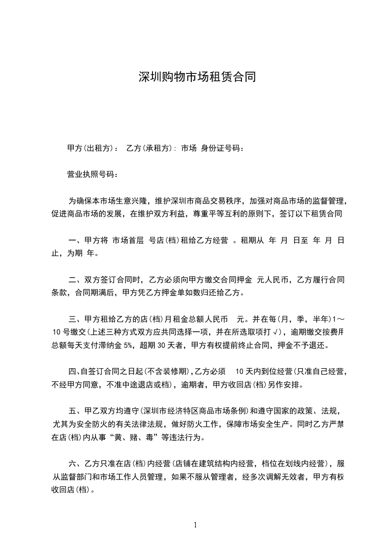 为确保本市场生意兴隆,维护深圳市商品交易秩序,加强对商品市场的监督管理,促进商品市场的发展,在维护双方利益,尊重平等互利的原则下,签订以下租赁合同。