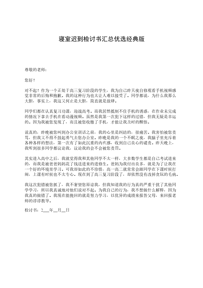 我知道,老师对于我的犯校规也非常的生气。我也知道,对于学生,按时上课是一项最基本的责任,也是最基本的义务。但是我却连最基本的都没有做到。我会以这次违纪事件作为一面镜子时时检点自己,批评和教育自己,自觉接受监督。我要知羞而警醒,知羞而奋进,亡羊补牢、努力学习。