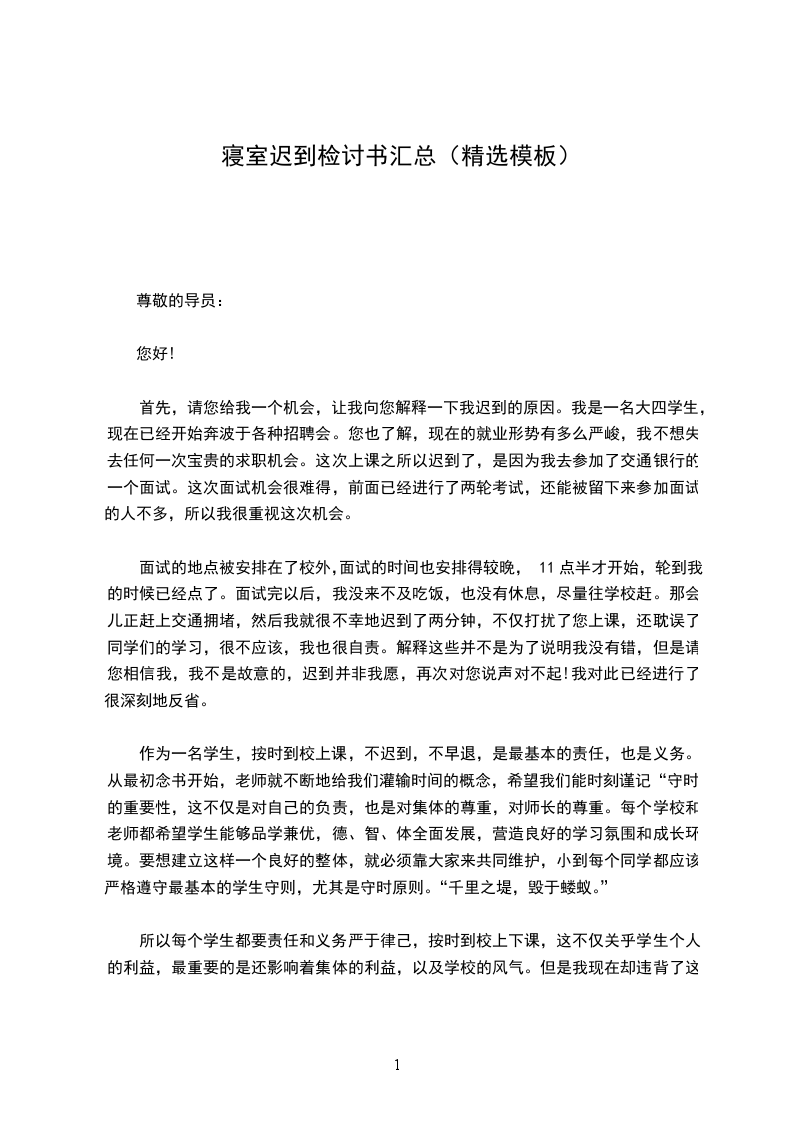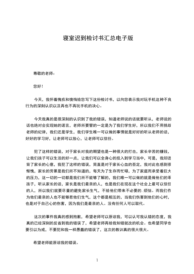 由于我一个人的犯错误,有可能造成别的同学的效仿,影响班级纪律性,年级纪律性,对学校的纪律也是一种破坏,而且给对自己抱有很大期望的老师,家长也是一种伤害,也是对别的同学的父母的一种不负责任。每一个学校都希望自己的学生做到品学兼优,全面发展,树立良好形象,也使我们的学校有一个良好形象。每一个同学也都希望学校给自己一个良好的学习环境来学习,生活。包括我自己也希望可以有一个良好的学习环境,但是一个良好的学习环境靠的是大家来共同维护来建立起来的,我应该为自己的犯的错误付出代价,我真诚地接受批评,并愿意接受学校给予的处理。对不起,老师!我犯的是一个严重的时间观念的问题。