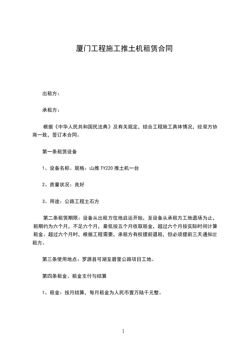 第一条租赁设备