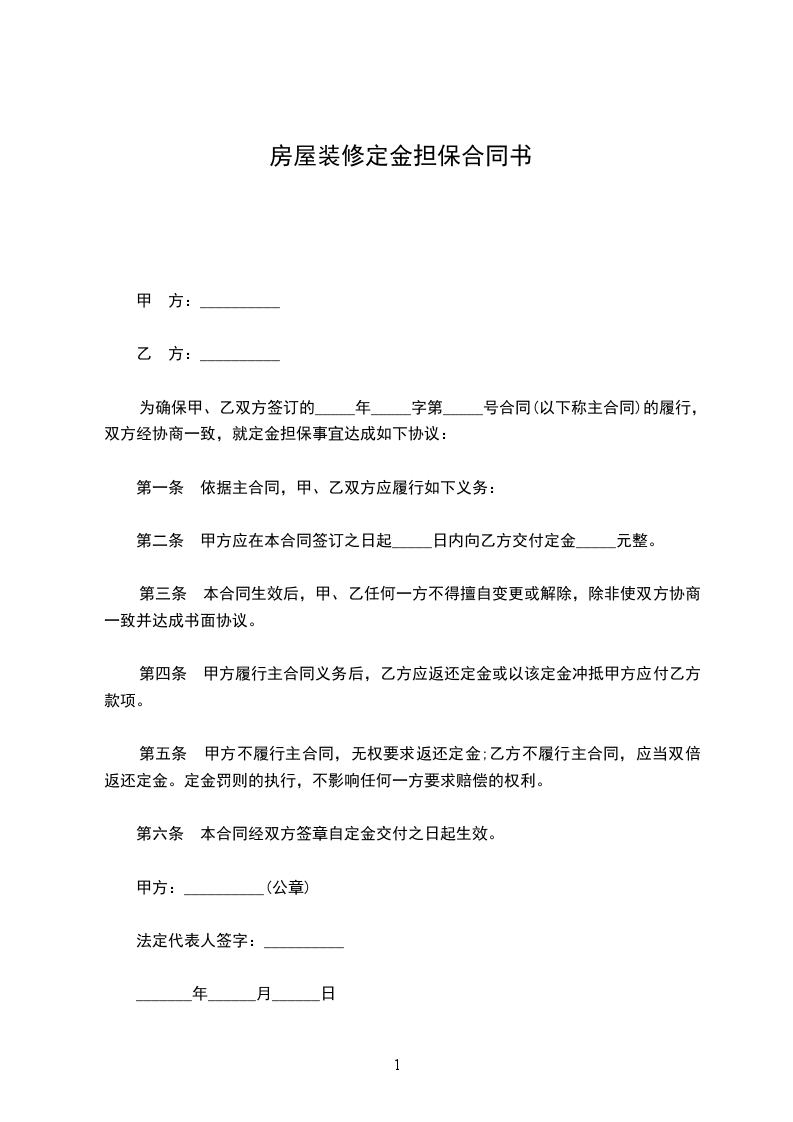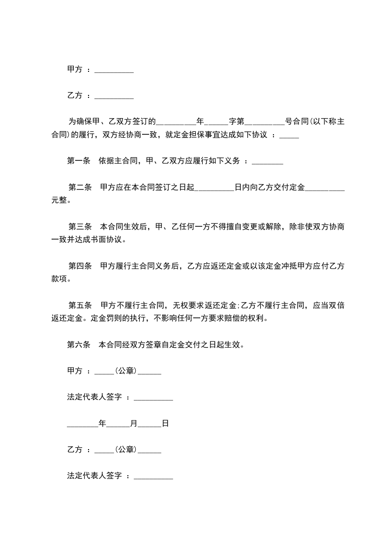 第二条 甲方应在本合同签订之日起_____日内向乙方交付定金_____元整。