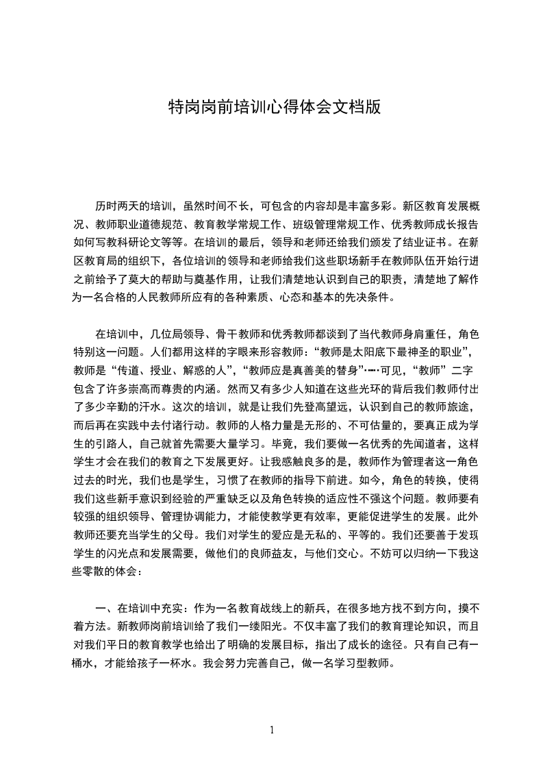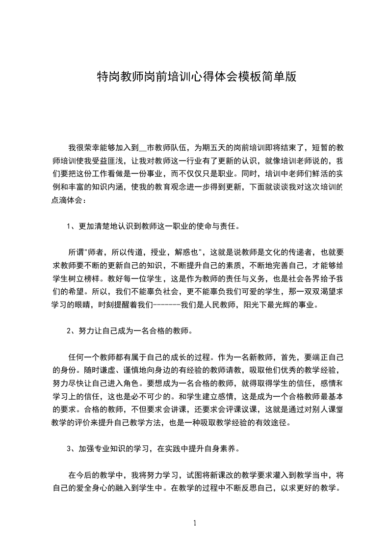 我很荣幸能够加入到__市教师队伍,为期五天的岗前培训即将结束了,短暂的教师培训使我受益匪浅,让我对教师这一行业有了更新的认识,就像培训老师说的,我们要把这份工作看做是一份事业,而不仅仅只是职业。同时,培训中老师们鲜活的实例和丰富的知识内涵,使我的教育观念进一步得到更新,下面就谈谈我对这次培训的点滴体会: