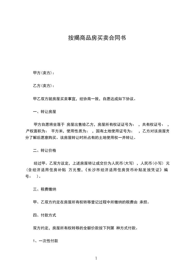 经过甲、乙双方议定,上述房屋转让成交价为人民币(大写) ,人民币(小写) 元(含经济适用住房补贴 万元整,《长沙市经济适用住房货币补贴发放凭证》编号: )。