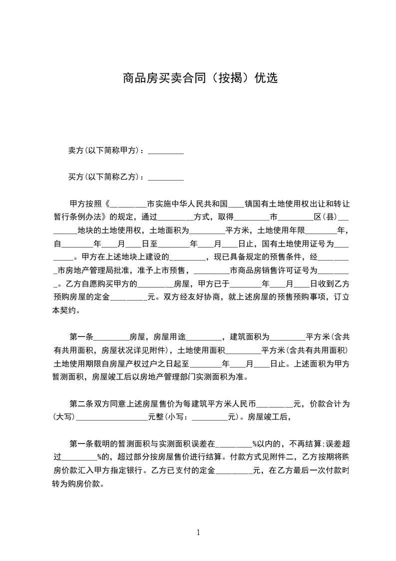 应于本合同签订之日起 日内支付首期房款人民币 元,余款 元在 日内由买方向银行申请以按揭方式付清,如未能付清,则本合同自动终止。
