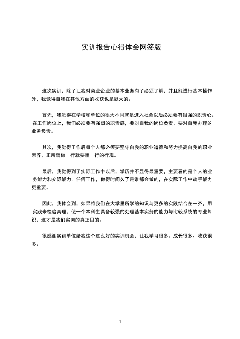 这次实训,除了让我对商业企业的基本业务有了必须了解,并且能进行基本操作外,我觉得自我在其他方面的收获也是挺大的。