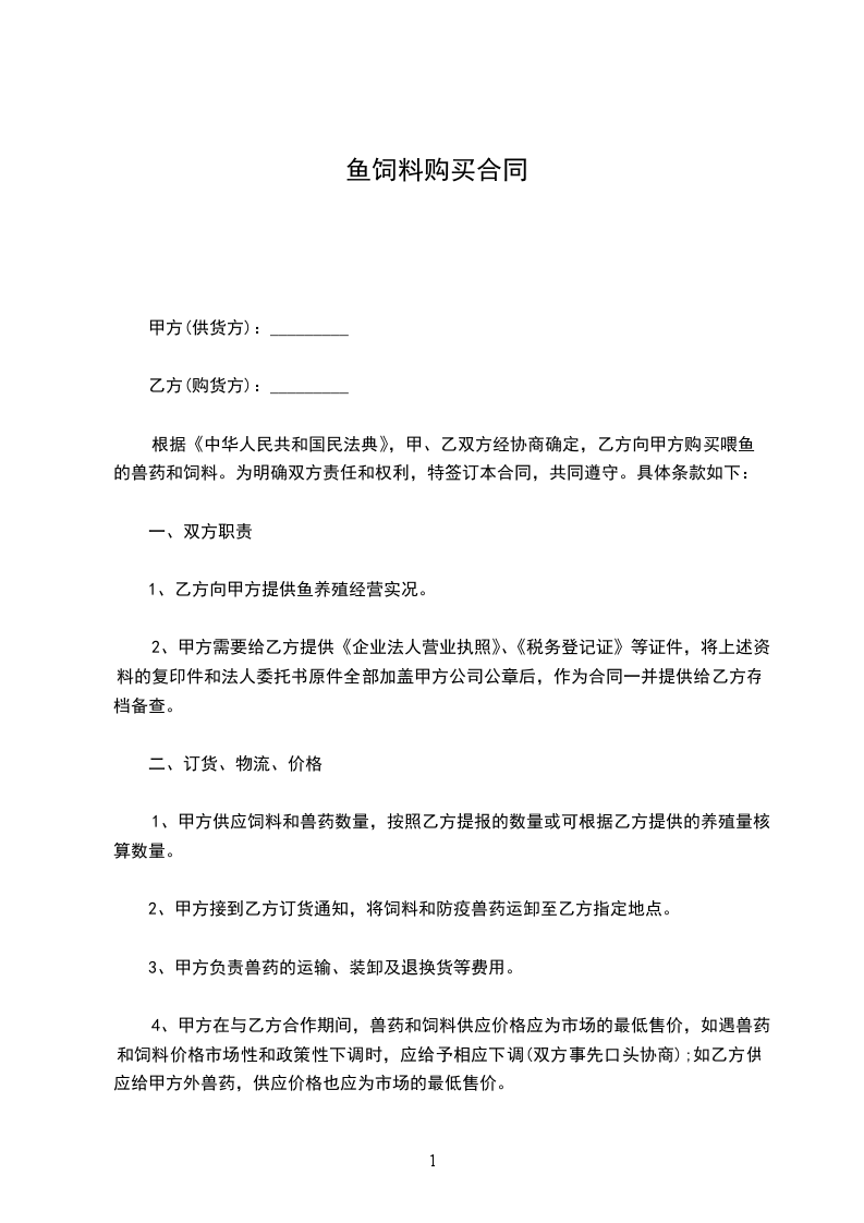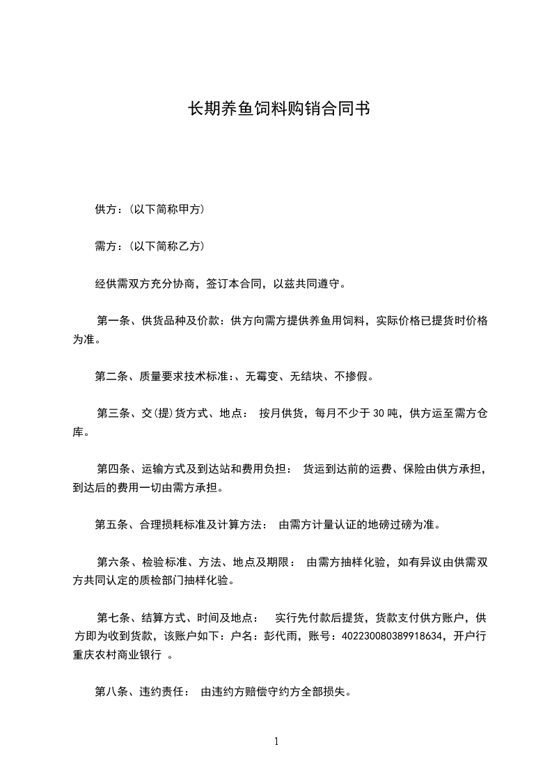 第一条、供货品种及价款:供方向需方提供养鱼用饲料,实际价格已提货时价格为准。