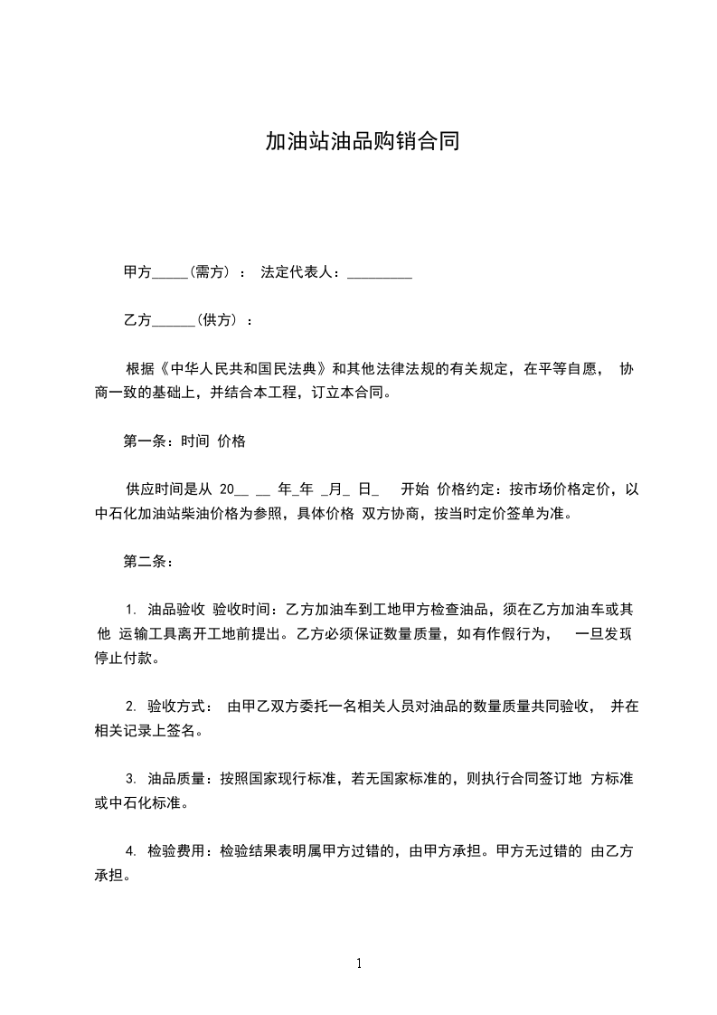 三、甲方确保为乙方提供的油品质量符合国家标准。