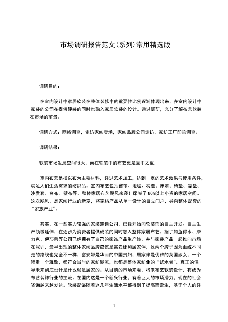 在室内设计中家居软装在整体装修中的重要性比例逐渐体现出来,在室内设计中家装的公司在提供硬装的同时也融入家居软装的设计。通过调研,充分了解布艺软装在市场的前景。