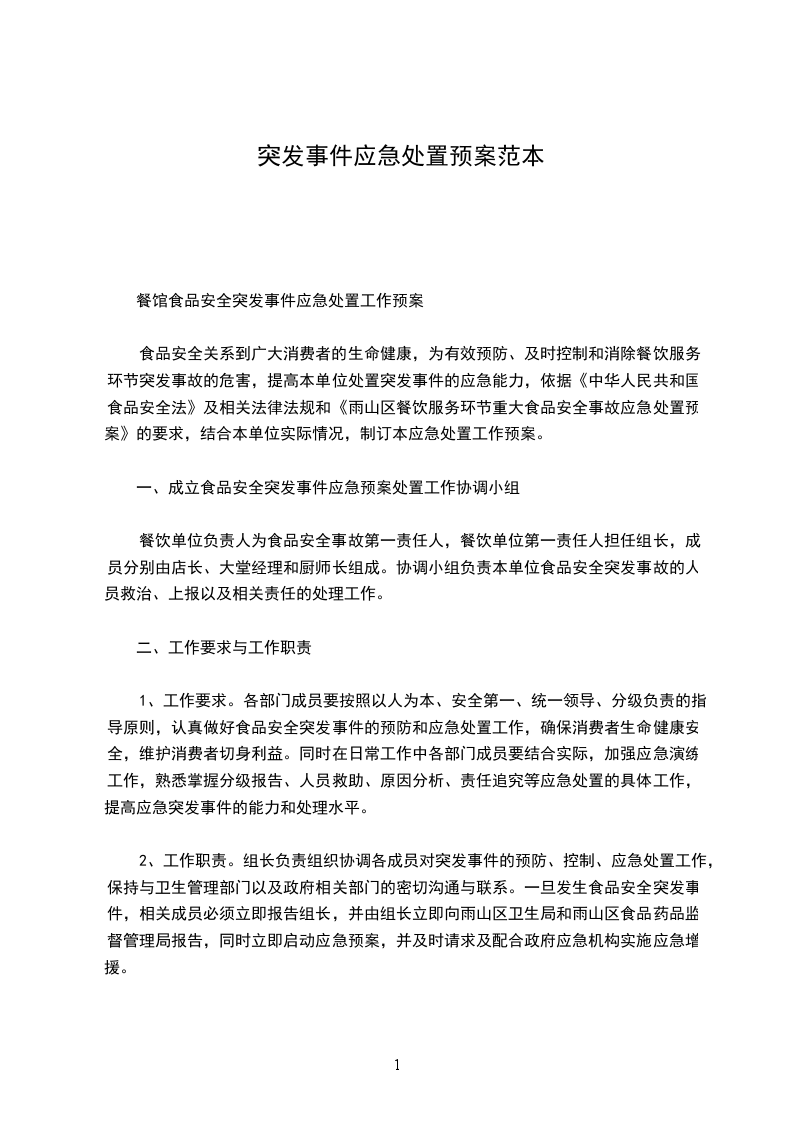 为维护____和_____身体健康和生命安全,保障单位正常运营,维护社会稳定,根据《食品安全法》等法律法规的要求,结合工作情况,特制定如下食品安全应急预案: