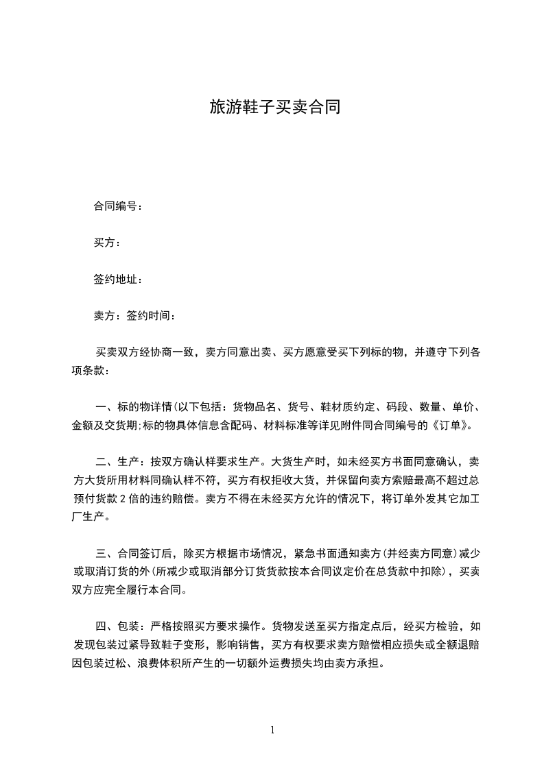 八、验收标准:买方按确认样及相关标准和要求验收所有货物。相关标准以国际鞋类贸易正常检验标准为准,如客户对某个批次(或全部批次)大货有另行质量要求或其他要求,买方需在该批次(或指定批次)交货期前________年,期满另续;
