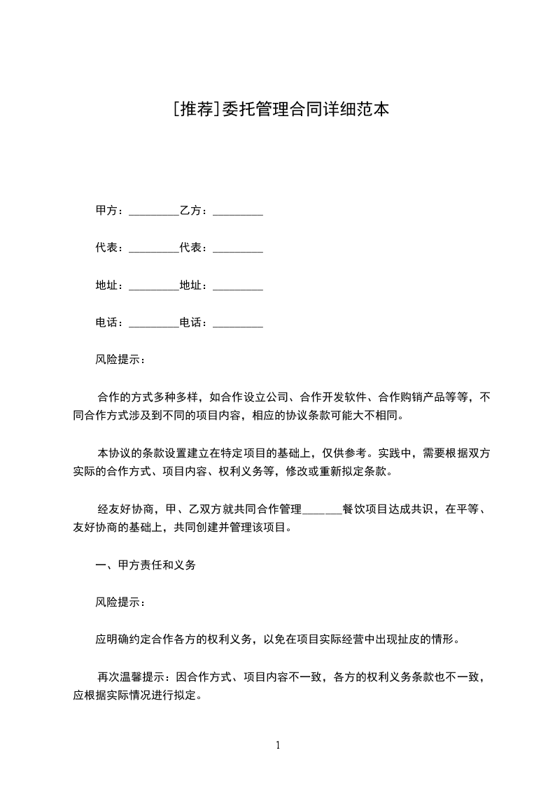 经友好协商,甲、乙双方就共同合作管理_______餐饮项目达成共识,在平等、友好协商的基础上,共同创建并管理该项目。
