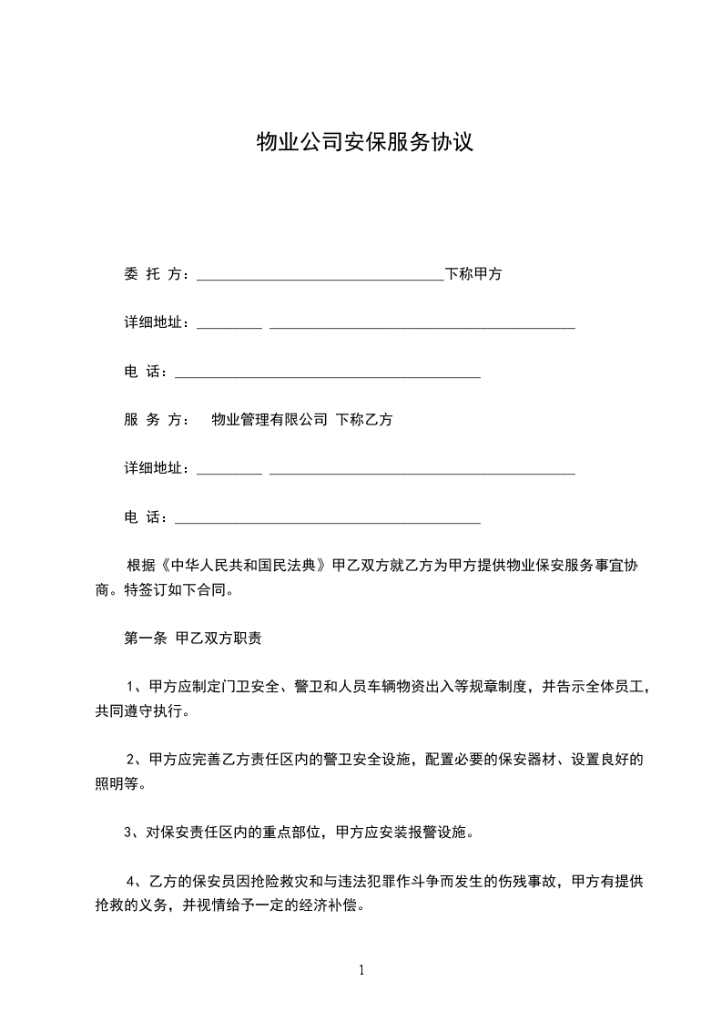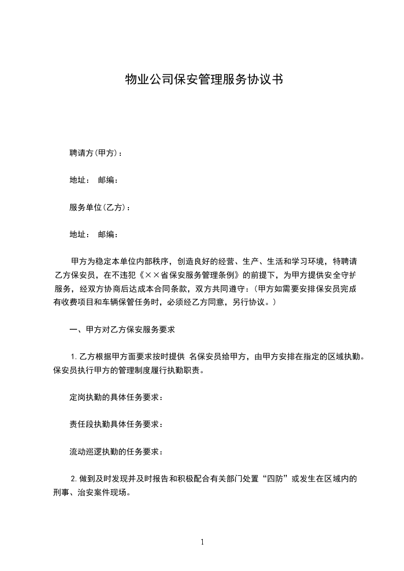 1.乙方根据甲方面要求按时提供 名保安员给甲方,由甲方安排在指定的区域执勤。保安员执行甲方的管理制度履行执勤职责。