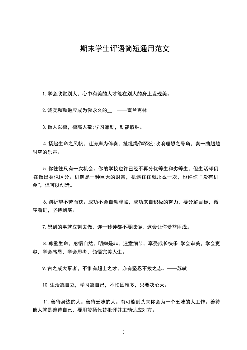 你能较快地适应新的学习、生活环境,能自觉遵守各项作息制度,能按时就寝,准时参加晨读,积极参加早锻炼,运动会上奋勇拼搏,为班级争光添彩,能认真做好教室、宿舍的内务卫生值日工作,在同伴中有较好的人缘,学习上,有较强的进取心,能认真听课,完成各项作业,但在学习方法上有所欠缺,成绩进步不够明显,希今后,进一步增强学习的自信心,探索科学的学习方法,力争使成绩有较大进步。