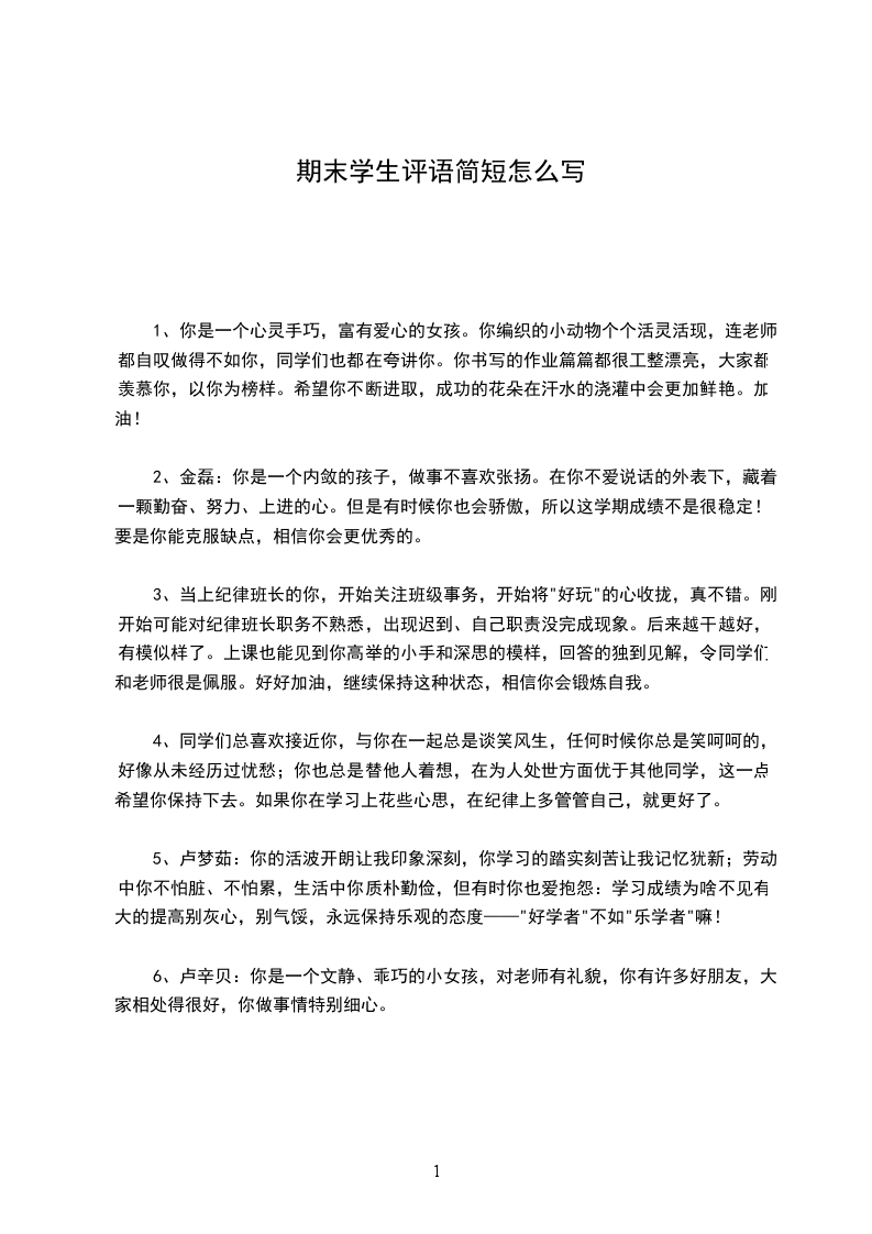 你是一个比较乖巧、懂事、有上进心的女孩。你课代表工作积极负责。最难忘的是你工整的作业书写。瘦弱的你在田径场上表现出了顽强的毅力和耐力。希望以后能将这种精神运用到学习上。同时也希望你有良好的心态,正确对待自己的得失