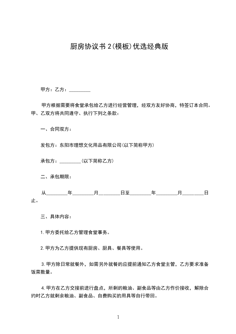 2.甲方为乙方提供现有厨房、厨具、餐具等使用。