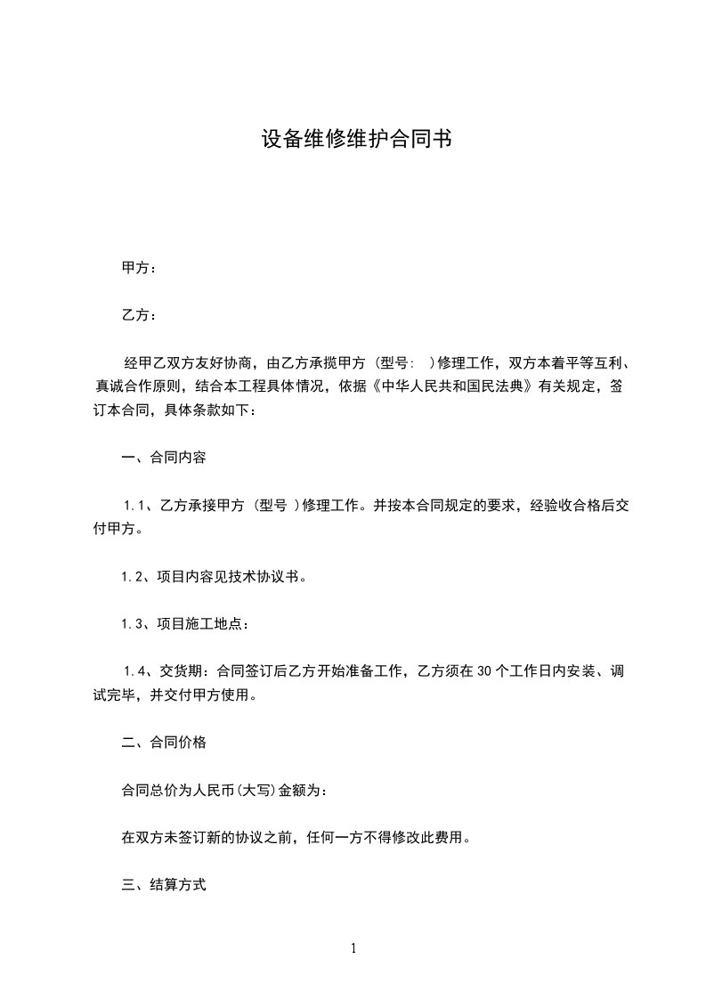 1.1、乙方承接甲方 (型号 )修理工作。并按本合同规定的要求,经验收合格后交付甲方。