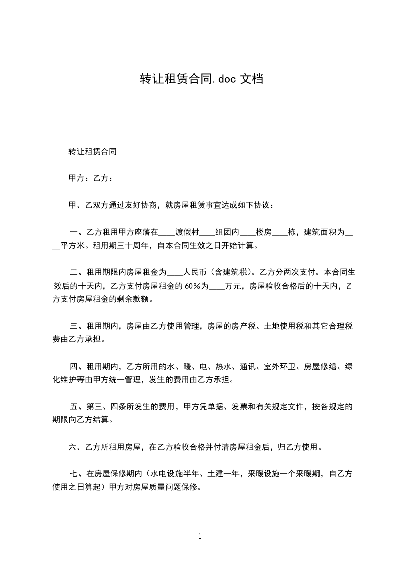 第四条租金。该房屋月租金为(人民币大写)______元整。