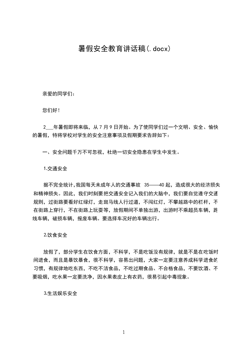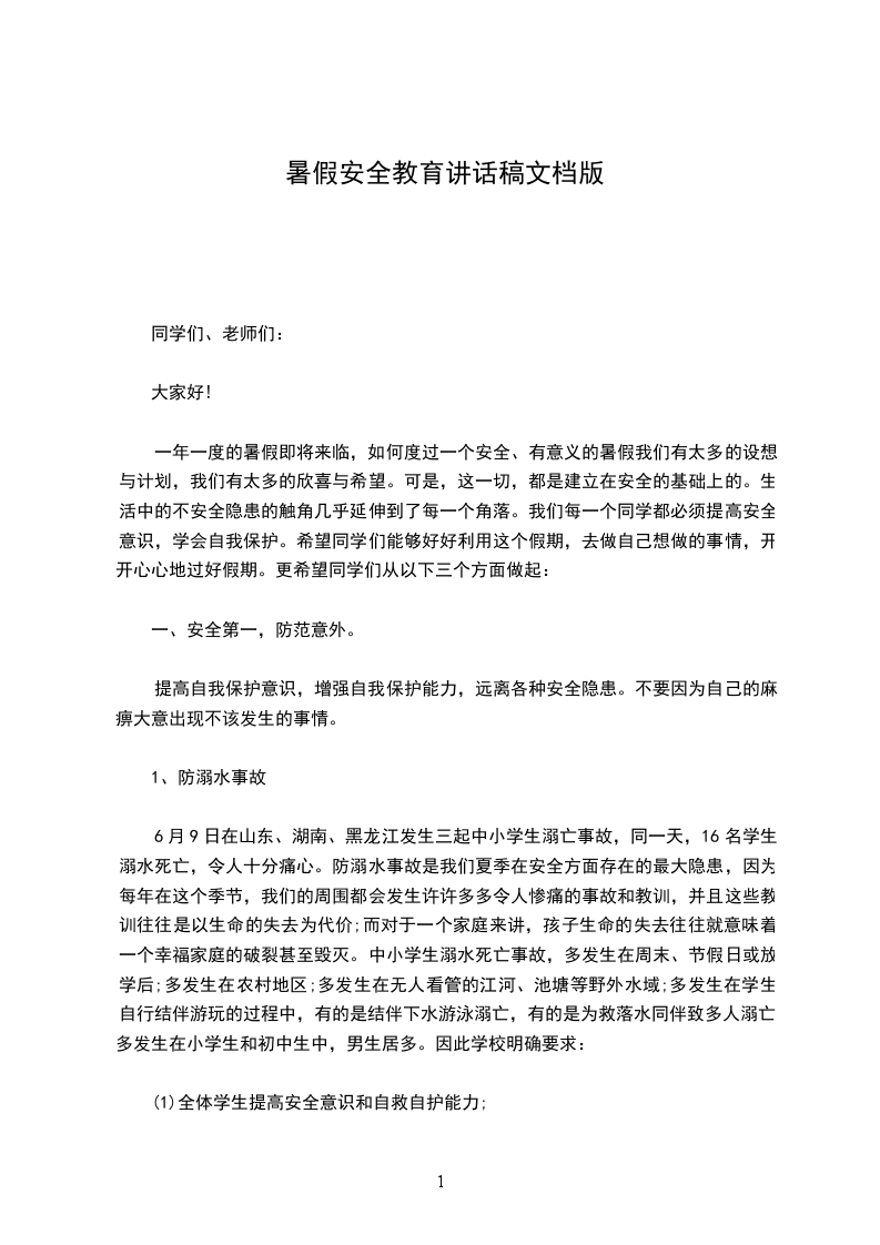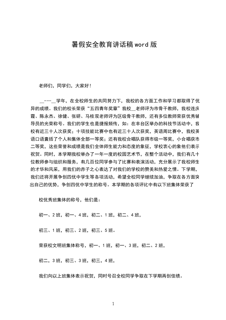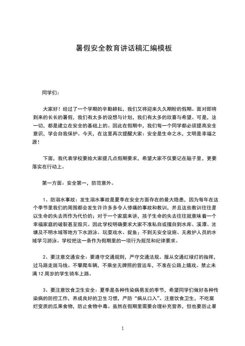 大家好!经过了一个学期的辛勤耕耘,我们又将迎来久久期盼的假期。面对即将到来的长长的暑假,我们有太多的设想与计划,我们有太多的欣喜与希望。可是,这一切,都是建立在安全的基础上的。因此在假期中,我们每一个同学都必须提高安全意识,学会自我保护。今天,在这里再次提醒大家:安全是生命之水,文明是幸福之源!