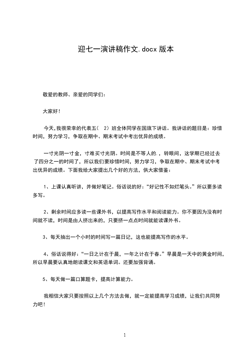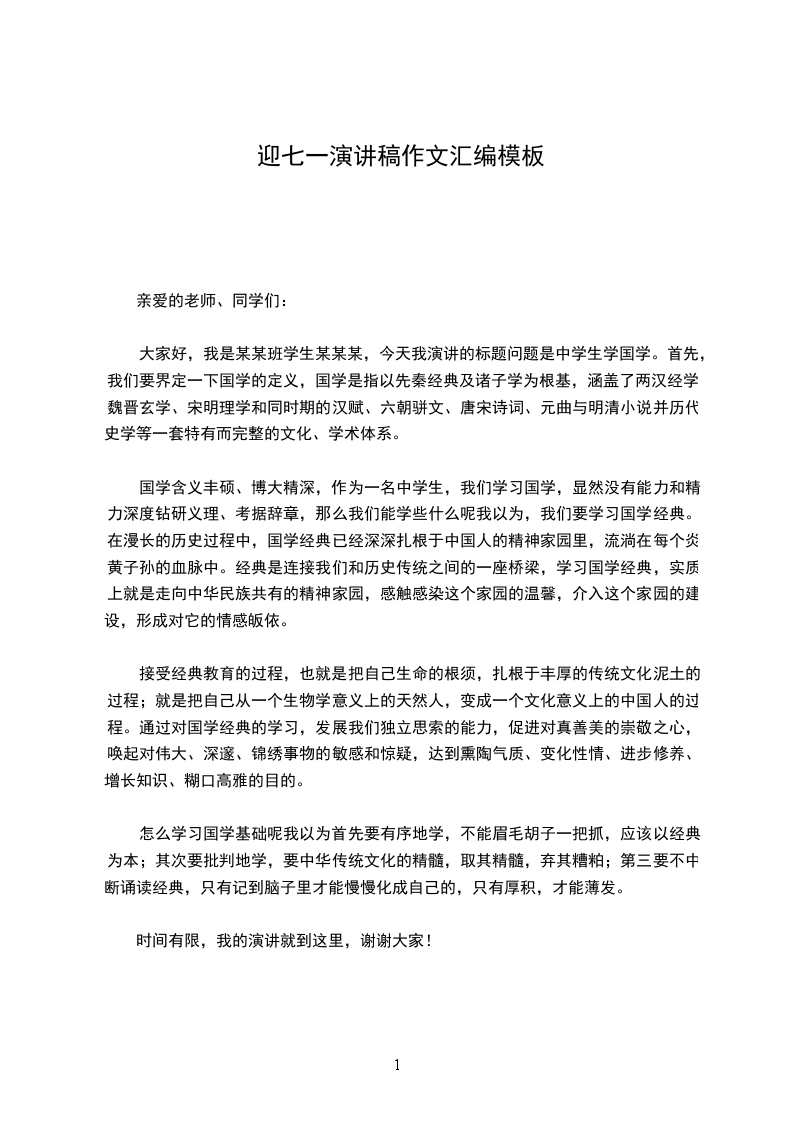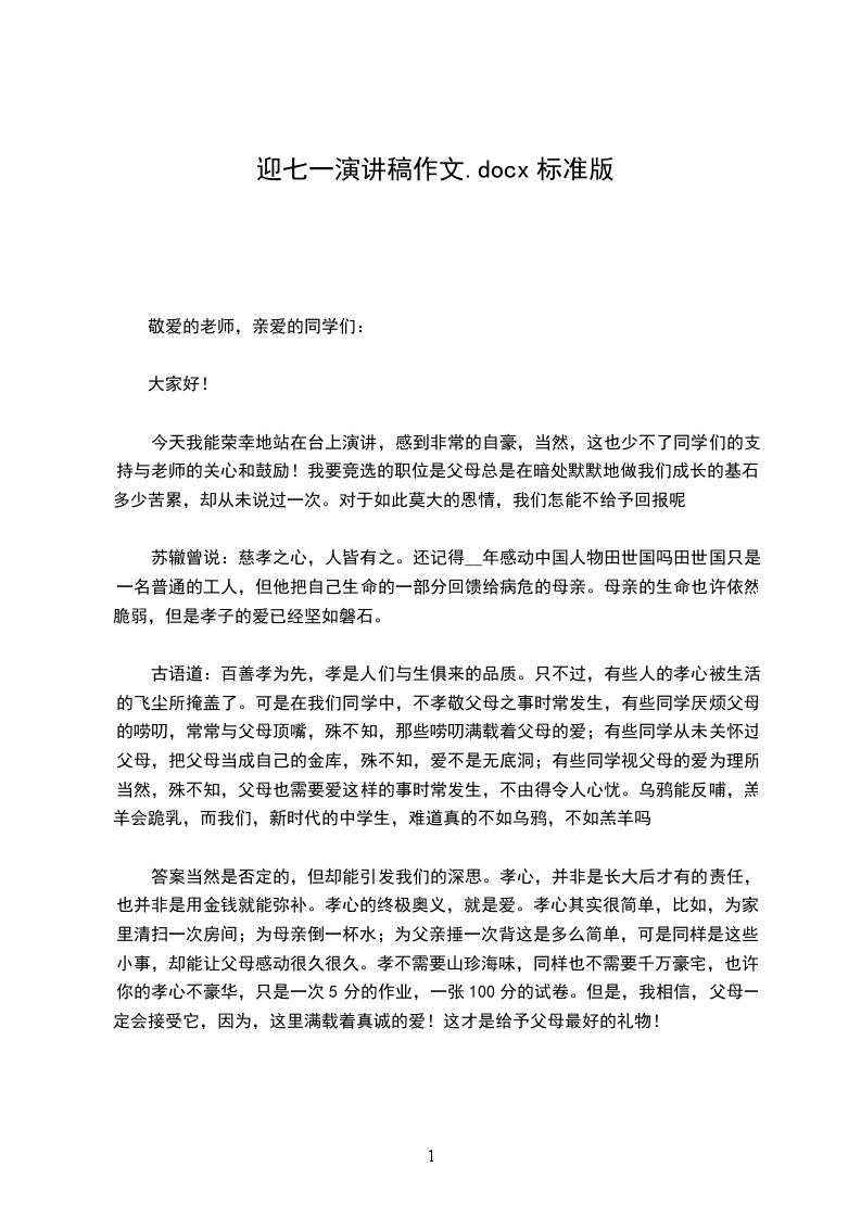 尊敬的老师,亲爱的同学们: