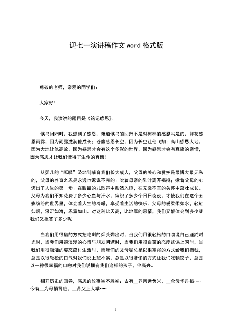 今天,我演讲的题目是《铭记感恩》。
