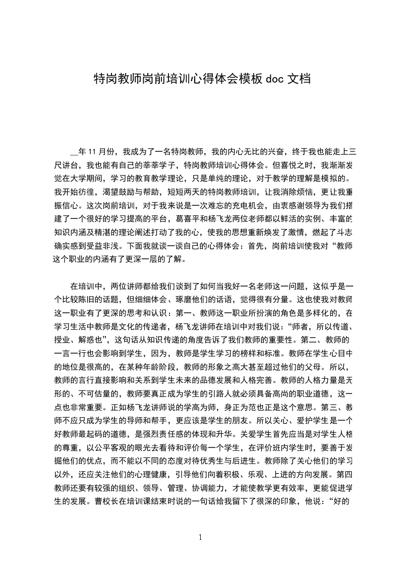 这是一个季节交替的日子,我很荣幸地成为2___年农村义务阶段特岗教师队伍中的一员,开始了自己人生的里程。县教育局为了使我们新教师尽快适应中小学的教学工作,特地对我们进行了为期三天的岗前培训。这次新教师培训的内容十分丰富,包括对教师职业道德修养,中小学班主任工作,中小学教师教学工作常规,基础教育课程改革通识性,现代教育思想和教育法律法规等诸多方面的系统学习。通过此次培训,我得到了很大的收获,现将自己的心得体会总结如下: